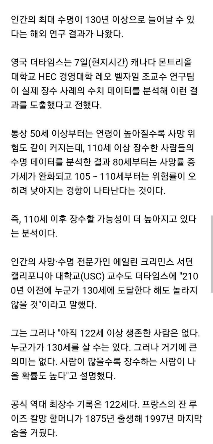 작성자periperA 작성시간 24.02.20 60부터 늙을텐데 그 몸으로 130살까지 사는건 아안돼.. 나는 80대에 안락사 할께