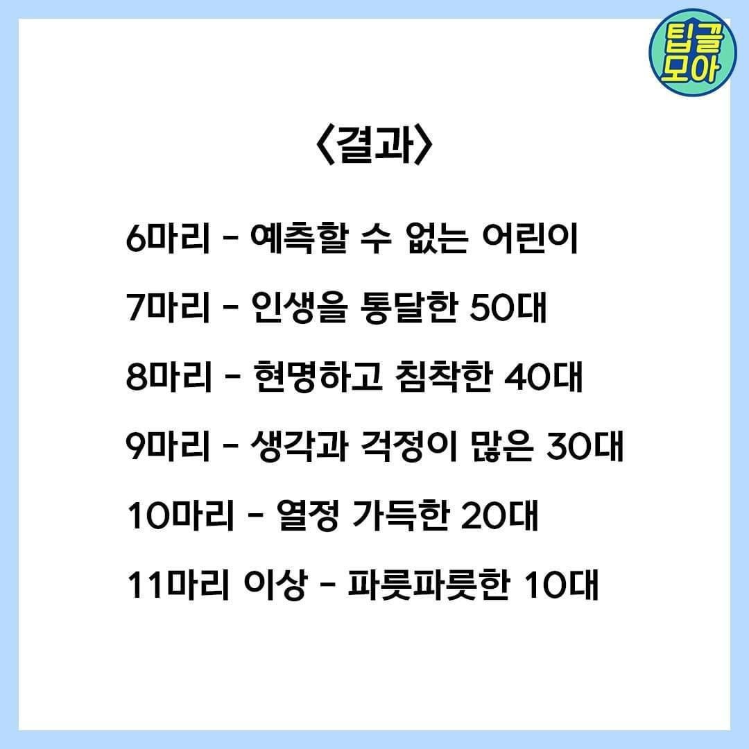 [스크랩] [흥미돋]정신연령 테스트 작성자아부다비|작성시간24.02.20|조회수8,522 목록 댓글 34 글자크기 작게가 글자크기 크게가 출처 : 여성시대 트레이서 9마리..? 하고 내려온 30대 뜨끔;씌핥,,, 다음검색 스크랩 원문 : *여성시대* 차분한 20대들의 알흠다운 공간 현재 게시글 추가 기능 열기 북마크 공유하기 신고 센터로 신고 댓글 댓글 34 댓글쓰기 답글쓰기 댓글 리스트 작성자한 글자도 안맞아 이 개색히야 | 작성시간 24.02.20 내가 어린이라고..? 작성자버터빵치즈 | 작성시간 24.02.20 아무리 봐도 7마리에서 안 보여서 너무 궁금해서 찾아봄.. 이미지 확대 작성자이삭토스트햄어쩌고베스트 | 작성시간 24.02.20 7 작성자내적성은백수 | 작성시간 24.02.21 6머리인데요 작성자6alreadyy | 작성시간 24.02.21 9유 댓글 전체보기