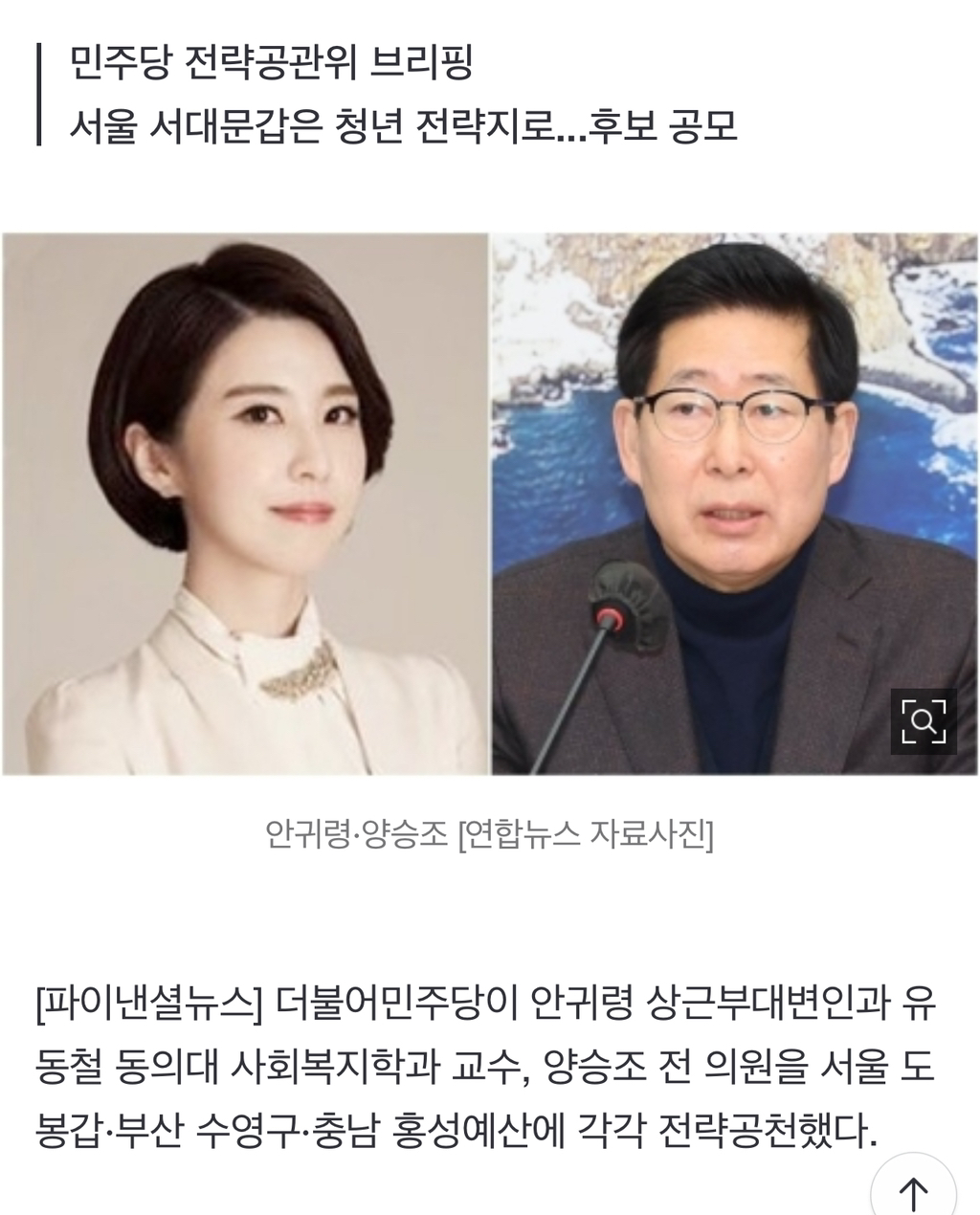 [여시뉴스데스크]민주, 안귀령·양승조 전략공천..양경숙·이성윤은 5인 경선[2024 총선] 작성자커뮤 밖으로 나가야 세상이 바뀐다|작성시간24.02.23|조회수1,918 목록 댓글 19 글자크기 작게가 글자크기 크게가 출처 : https://n.news.naver.com/article/014/0005146732?sid=100민주, 안귀령·양승조 전략공천..양경숙·이성윤은 5인 경선[2024 총선]더불어민주당이 안귀령 상근부대변인과 유동철 동의대 사회복지학과 교수, 양승조 전 의원을 서울 도봉갑·부산 수영구·충남 홍성예산에 각각 전략공천했다. 안규백 민주당 전략공천관리위원n.news.naver.com 다음검색 현재 게시글 추가 기능 열기 북마크 공유하기 신고 센터로 신고 댓글 댓글 19 댓글쓰기 답글쓰기 댓글 리스트 작성자하귤감귤 | 작성시간 24.02.23 안귀령!!!!!!!!!!! 무조건 잘 될 수 밖에 없다!!!!!! 대선때부터 고생 많이했는데ㅠㅠㅠ화이팅 작성자문재인 | 작성시간 24.02.23 ㅋㅋ 커령언니♡♡♡♡ 작성자Love me | 작성시간 24.02.24 와 안귀령...응원함!!!!!!! 작성자불미싱 | 작성시간 24.02.24 너무 잘됐다 응원해요 ! 작성자운수조진날 | 작성시간 24.02.24 안귀령 나오는 건 확정 같은데 어디 나올까 궁금했는데 잘됐다!! 댓글 전체보기
