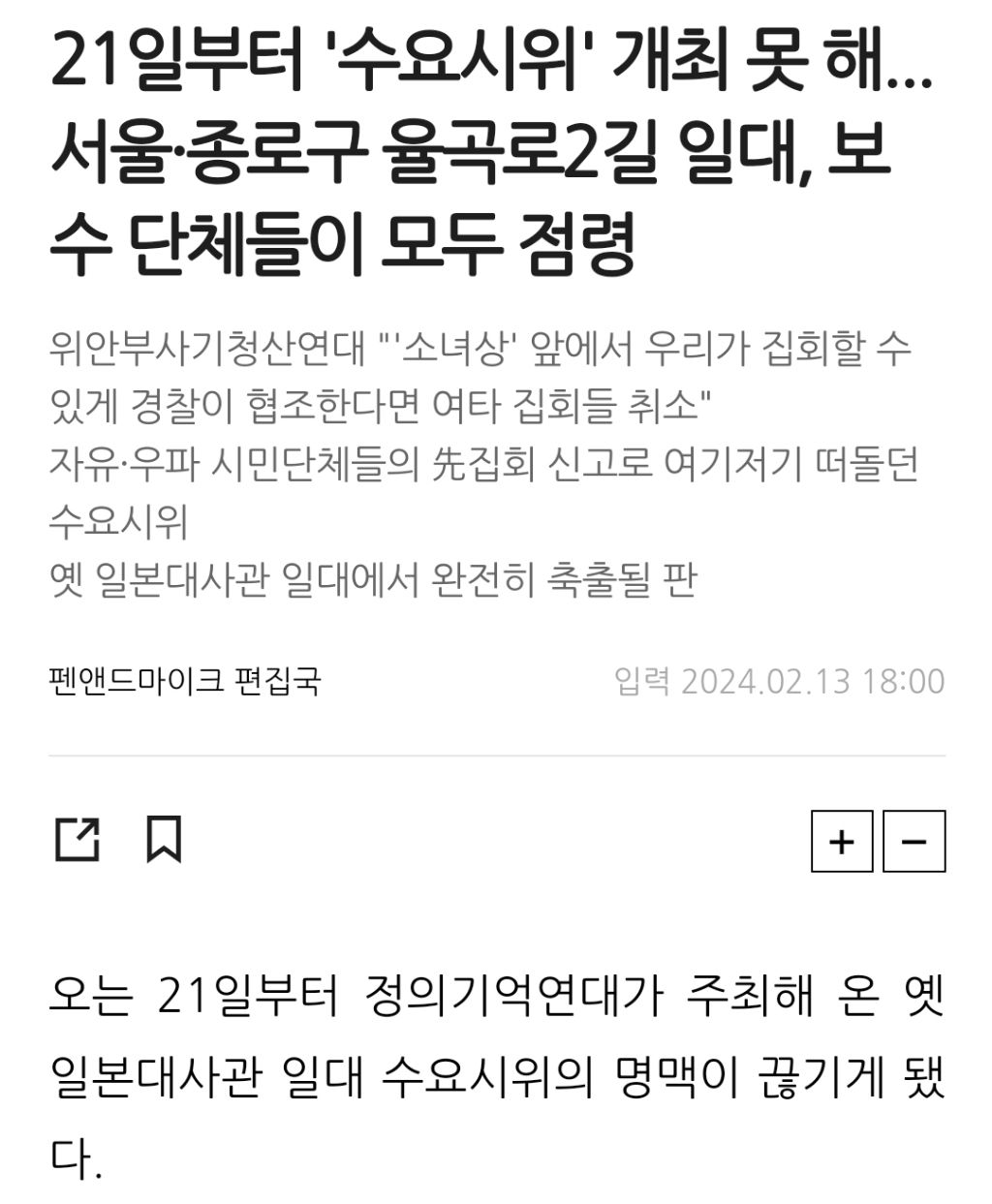 [스크랩] [여시뉴스데스크]내년 1월부터 '수요시위' 설 자리 없어진다...8개 시민단체, 일제히 집회 신고 작성자천리길|작성시간24.02.24|조회수915 목록 댓글 8 글자크기 작게가 글자크기 크게가 출처 : http://www.pennmike.com/news/articleView.html?idxno=73492(펜앤드마이크) http://www.pennmike.com/news/articleView.html?idxno=76393(펜앤드마이크)● 2023.12.02 기사이하 생략● 2024.02.13 기사중략이하 생략 다음검색 스크랩 원문 : *여성시대* 차분한 20대들의 알흠다운 공간 현재 게시글 추가 기능 열기 북마크 공유하기 신고 센터로 신고 댓글 댓글 8 댓글쓰기 답글쓰기 댓글 리스트 작성자사냥나간댜 | 작성시간 24.02.24 인간 맞음? 작성자스토커하지마한남쉐캬 | 작성시간 24.02.24 미친것들 작성자김바지절대살려 | 작성시간 24.02.24 너무 화난다...ㅠㅠㅠㅜ 진짜 자기들한테 돌아오는 이득이 뭐야???? 이해가 안된다 작성자하나두이서이너이 | 작성시간 24.02.24 미쳤나 일본한테 얼마나 받아쳐먹은거냐 작성자소박하게 | 작성시간 24.02.24 친일파새끼들 조졌어야 나라가 이모양 이꼬라지가 아니였을텐데 댓글 전체보기