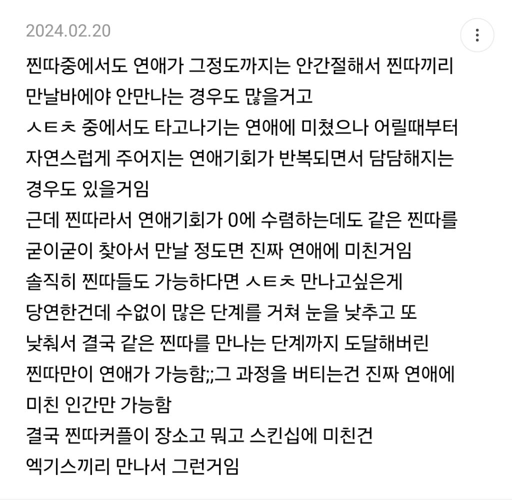 작성자젤좋아딸기가 작성시간 24.06.22 평범 커플도 많이 하던데.. 멀쩡하게 생긴 커플들,,, 오늘도 광화문에서 여럿봤다,,,