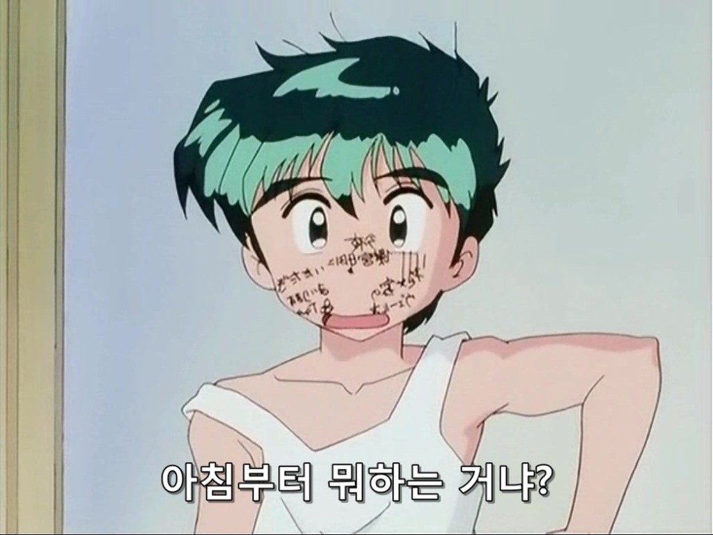 그렇게 해왔는데 이건 놀라 자빠지는 장면, 그 뒷장면까지 죄다 일본어가 얼굴에 쓰여져있어서