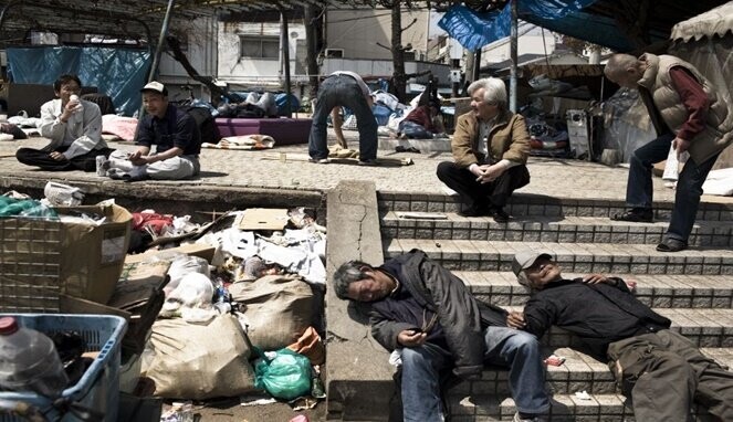 이런 일본 노숙자들의 끝이지 않는 행렬로 인해