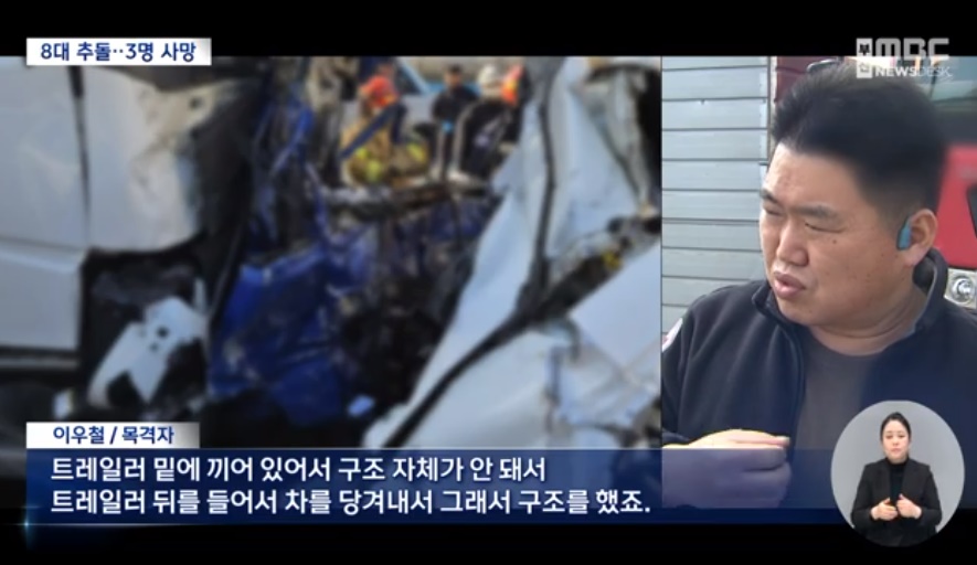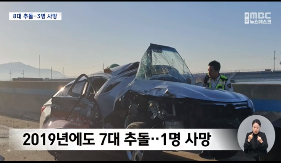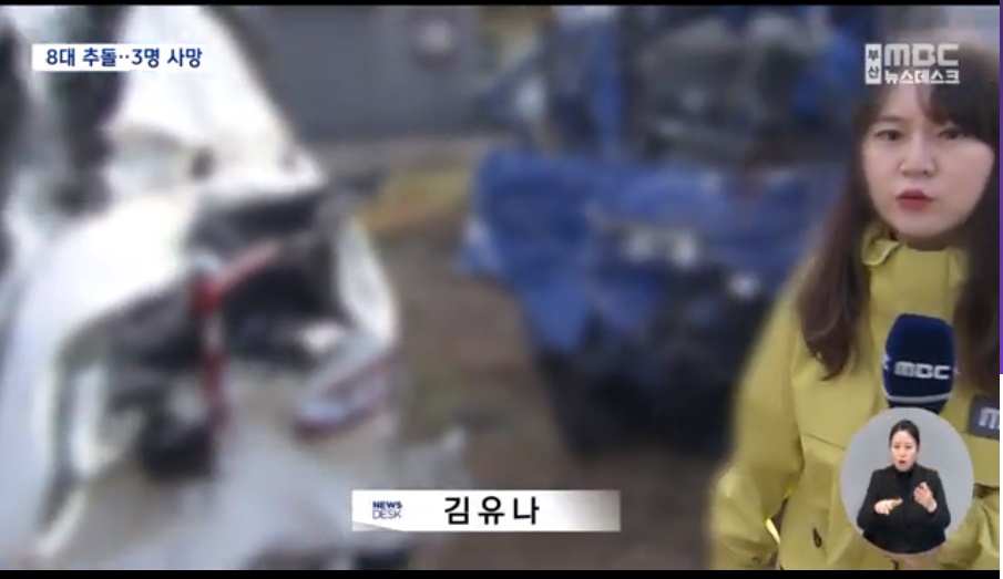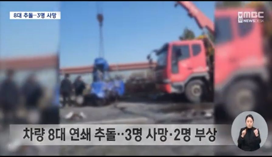 사이에 낀 스포티지, 스파크, 다마스 운전자 3명 다 사망..