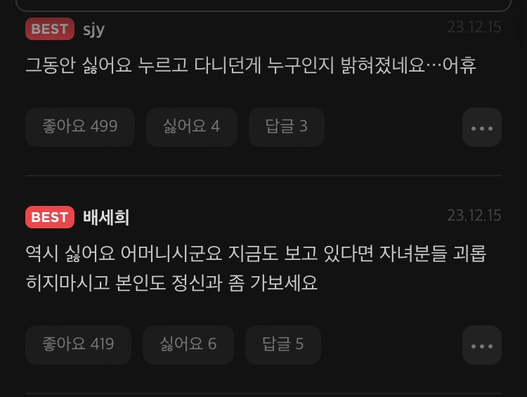 다들 싫어요 테러 엄마가 하는거 아니냐고
