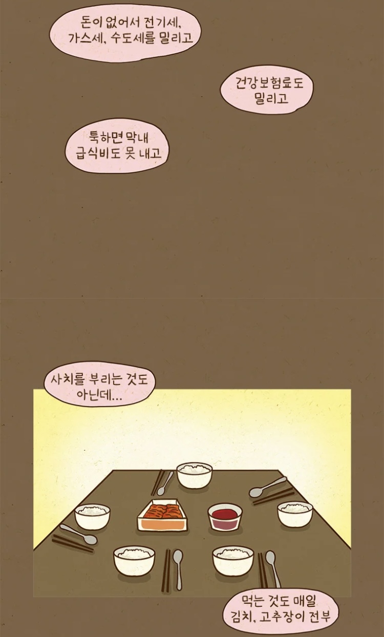 가정형편이 넉넉하지 않은 가족 일상을 다루고 있음
