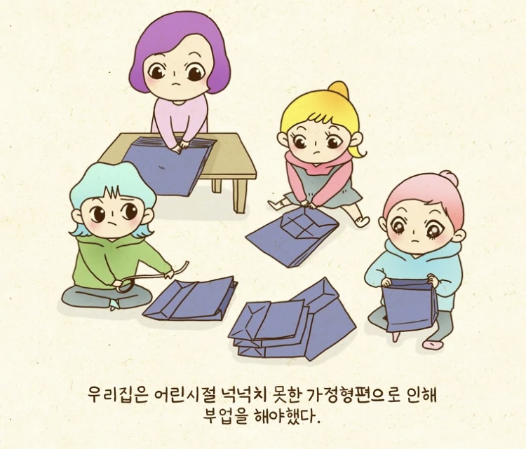 부업일 구해서 살림에 보태는 생활력 강한 엄마