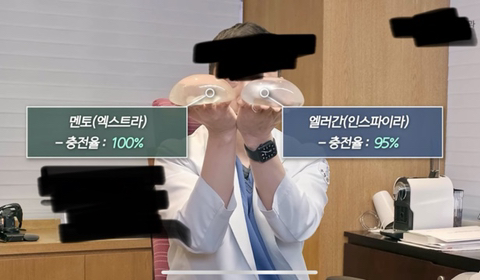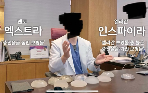성형외과 유튜브에서 캡쳐해온 가슴 보형물 사진