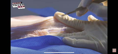 겨드랑이 or 가슴 밑선을 3~3.5cm 절개함