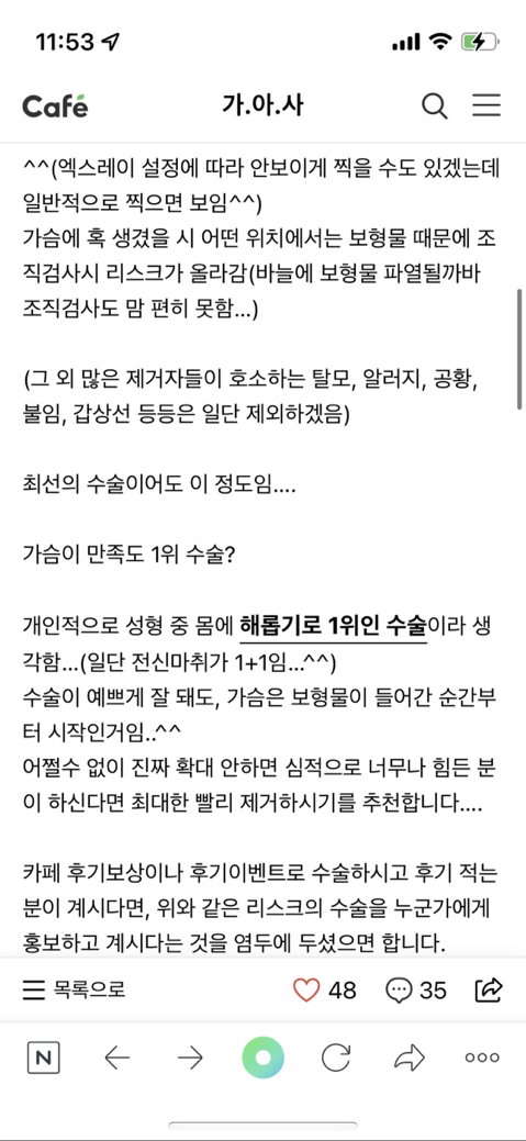 가슴수술 생각하는 여시라면 꼭 봤으면 해