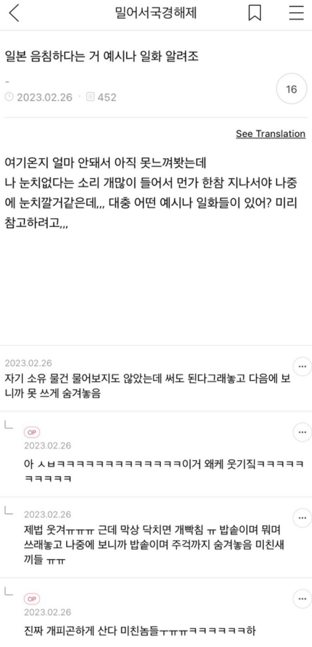 작성자긁긁긁 작성시간 24.03.05 한국 사는 일본인이 한국 옷가게에서 옷샀는데 그게 뭐 잘못됐나봐 정확하겐 기억안남 교환하러 가야한다함 근데 그거가지고 자기 일본인이라서 직원이 일부러 그런거 아니냐고 함 ㅡㅡ 도랏나 울나라 사람들이 지들같은 줄 아나 ㅋㅋㅋㅋ 그거 듣고 아 일본놈들 한국인 대하는 기본 마인드가 저따구구나 하고 알게됨 ^^ 내가 이래서 한국에서 보이는 일본인들도 혐오함 돈이나 쓰고 울나라에서 꺼져