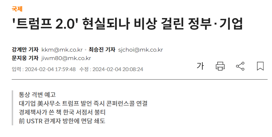 트럼프 재집권 가능성이 올라간 지금 한국의 다양한 각계계층에서 어떻게 생각하나