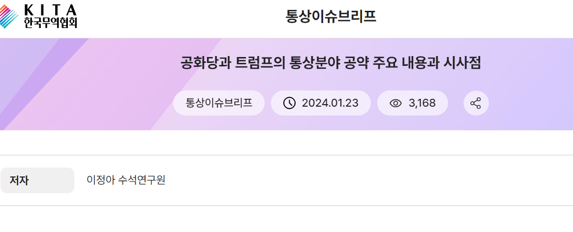 한국 무역협회 통상이슈 브리핑 내용 (1/23)