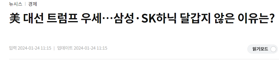 -블룸버그 "한국, 트럼프 재선시 바이든 행정부가 내린 조차 상당수 바뀔 수 있으며, 삼성전자와 하이닉스의 중국 공장 관련된 결정도 이에 포함될것"