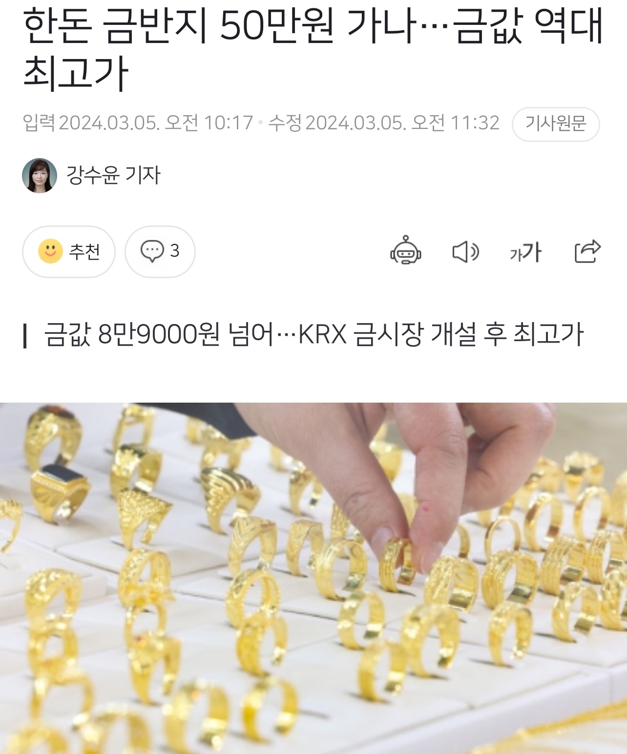 [여시뉴스데스크]한돈 금반지 50만원 가나…금값 역대 최고가 작성자꿀먹었슈?|작성시간24.03.05|조회수5,651 목록 댓글 11 글자크기 작게가 글자크기 크게가 출처 : https://n.news.naver.com/article/003/0012406618?sid=101전문 출처 다음검색 현재 게시글 추가 기능 열기 북마크 공유하기 신고 센터로 신고 댓글 댓글 11 댓글쓰기 답글쓰기 댓글 리스트 작성자세후15억 코스피3000 | 작성시간 24.03.05 작년에 3돈 100만원대였는데 덜덜.. 작성자짜란다자란다 | 작성시간 24.03.05 오 ! 금 팔때인가 작성자아난다 | 작성시간 24.03.05 아놔 금살 생각하니까 오르네.. 뭐 나 열돈있어요 오를거면 올라라,,, 작성자눕눕아티스트 | 작성시간 24.03.05 와 목걸이랑 귀걸이 팔까 작성자매운맛중독자 | 작성시간 24.03.05 담달에 사려햇는데 아놔 댓글 전체보기