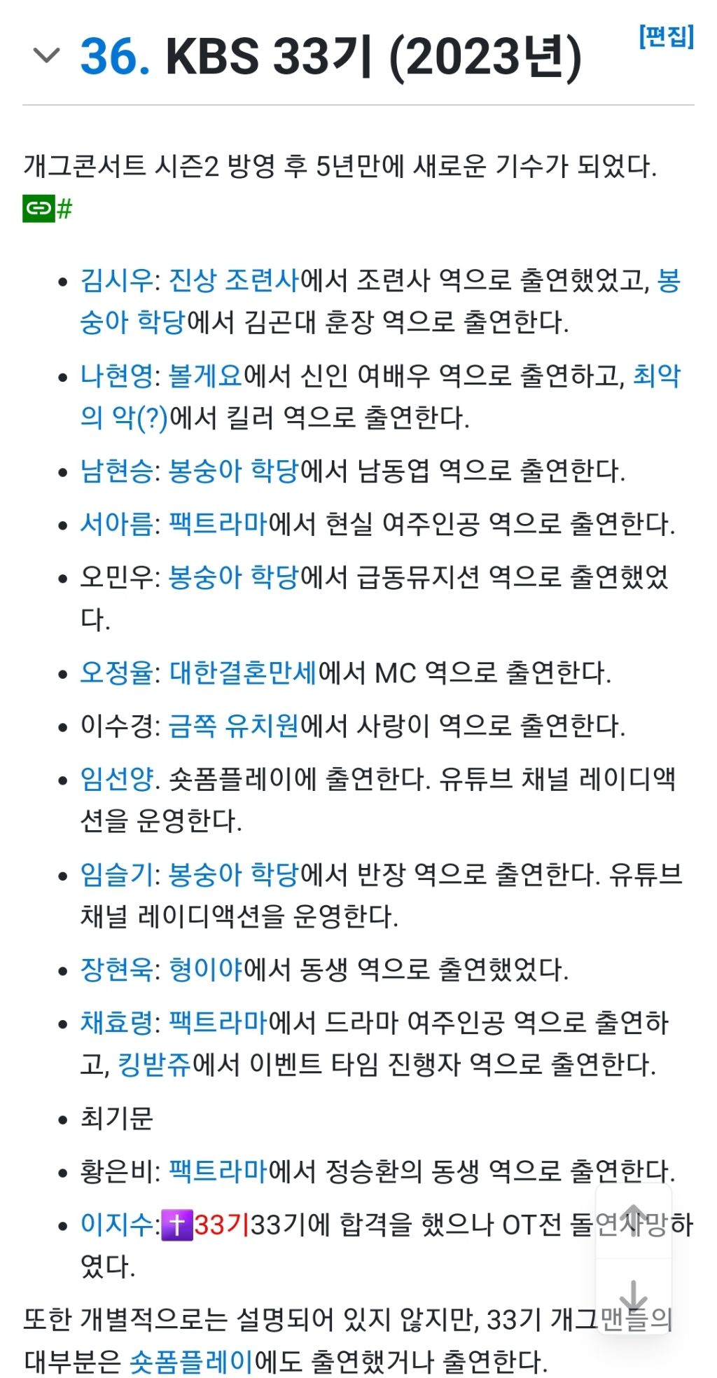 27기부터는... 슬슬 쇠퇴기... 아는개그맨들이 별로없다.