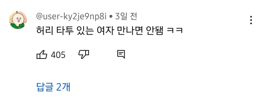 그런데 도태남들이 뜬금 없이 유튜버 허리에 있는 문신 가지고 디스 중임