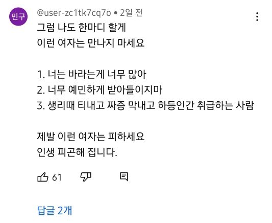 틱톡커 겸 유튜버 미선짱이 이렇게 말하는 남자들이랑 만나지 말라는 영상을 올림 사실 영상 내용 보면 너무나 당연한 내용임