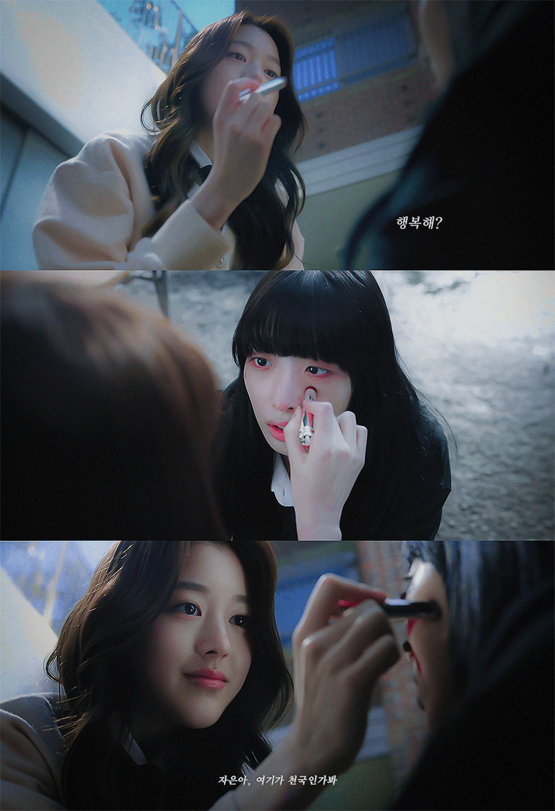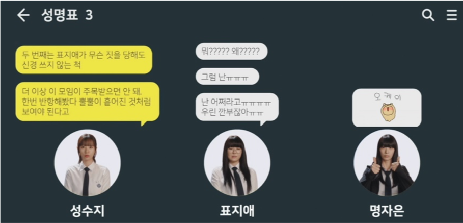 3. 주인공(성수지)이 그 반에 전학을 왔고 피라미드 게임을 없애기로 마음 먹는다.