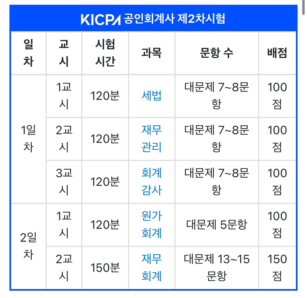 시험은 2월에 1차와 6월에 2차 총 두번을 보는 방식으로 특이하게 과목 유예제도가 있음!