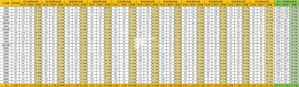 학교별로 다르지만 변시는 50퍼대 합격률을 보이고있음