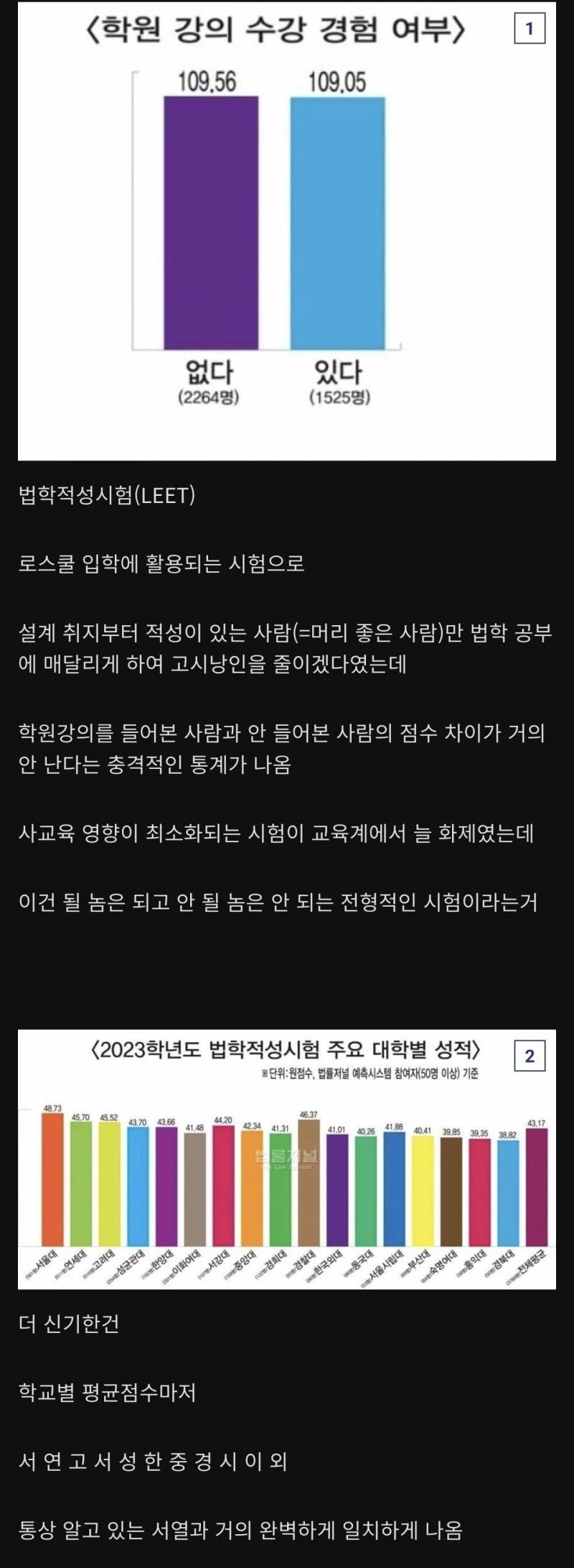 입시 과정이 매우 험난한데 주로 보는건 리트+학점+토익 이라는 숫자로 나오는 정량요소와 각종 정성요소들이 있음