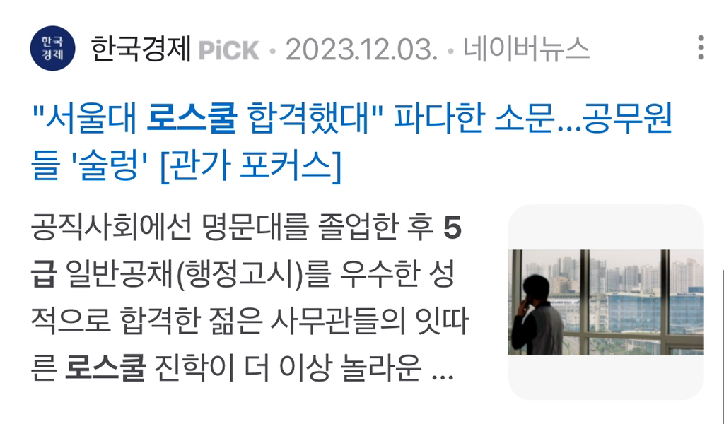 하지만 인기가 떨어졌다고는 해도 돈이나 워라밸보다는 명예와 미래를 위해 여전히 행시를 선호하는 사람들은 많기때문에 그래도 아직 3대 진로중 하나임!