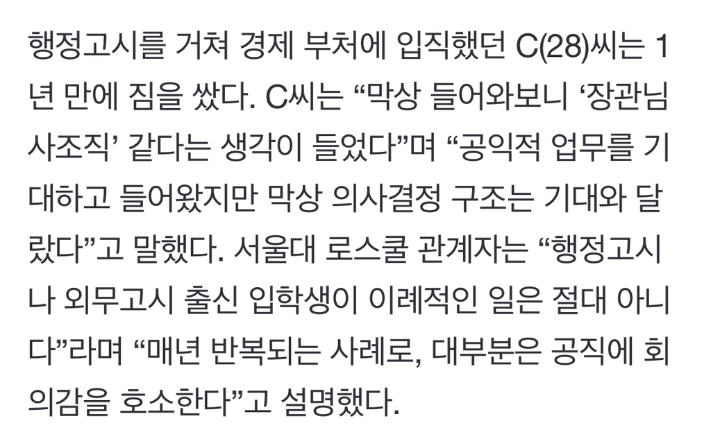 국내 최고 난이도의 시험이며 이걸 뚫고 합격한 개개인 능력도 특출나지만 그에 따른 보상이 돌아오지않아 탈출한다는 기사가 최근에 많이 떠서 안타깝기도함...