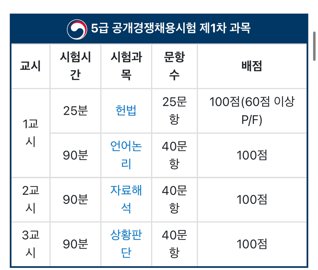 여기서 피셋이란? Public Service Aptitude Test. 인사혁신처 및 국회사무처가 공무원 채용을 위해 실시하는 적성평가로 일반적으로 줄여서 PSAT라고 함