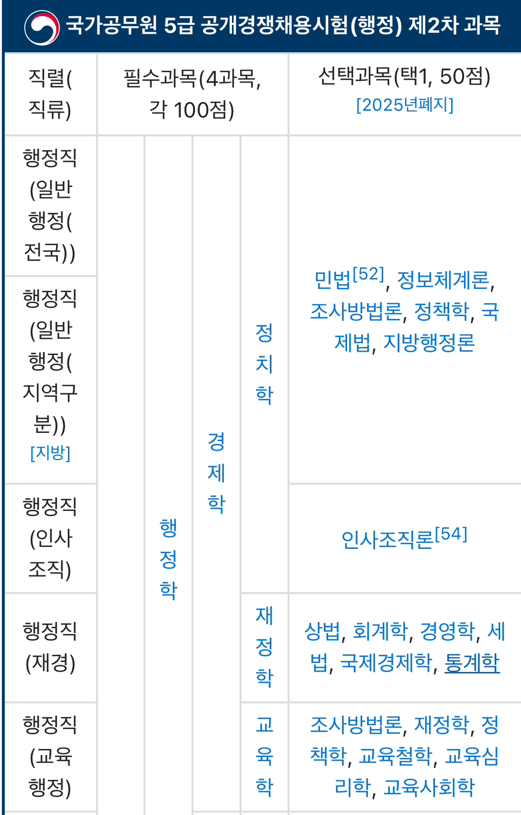2차는 서술형으로 직렬별로 필수과목과 선택과목이 다른데 선택과목은 2025년부터 폐지된다고함
