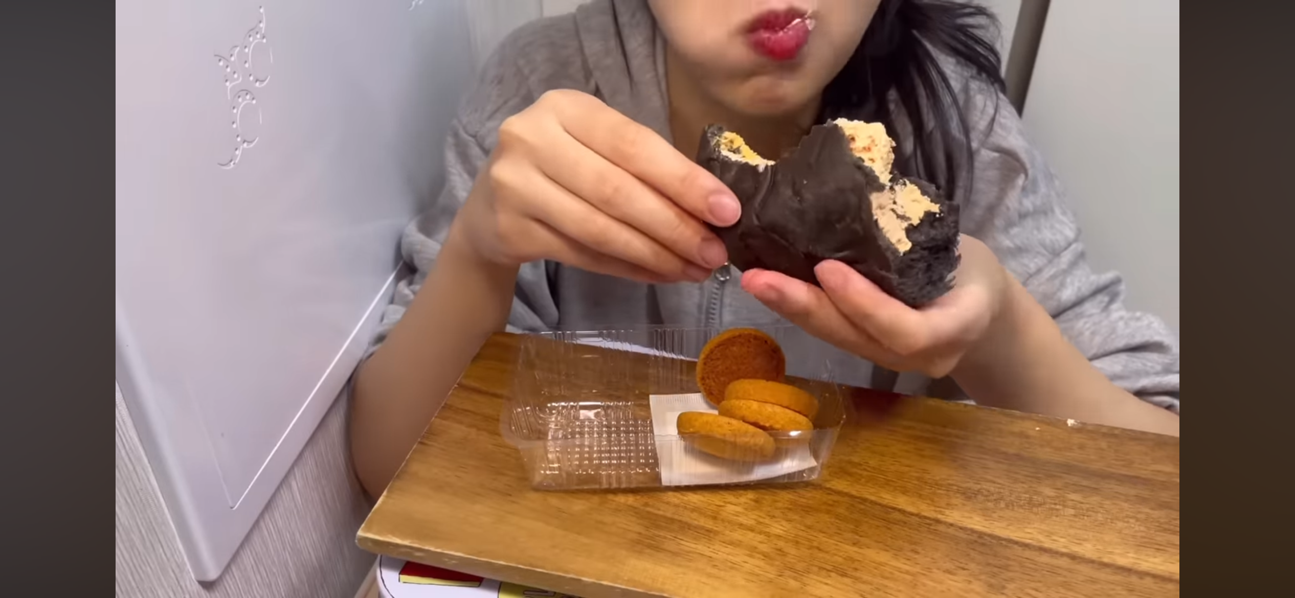 2️⃣ 황치즈 쿠키 꺼내서 크림 찍어먹음