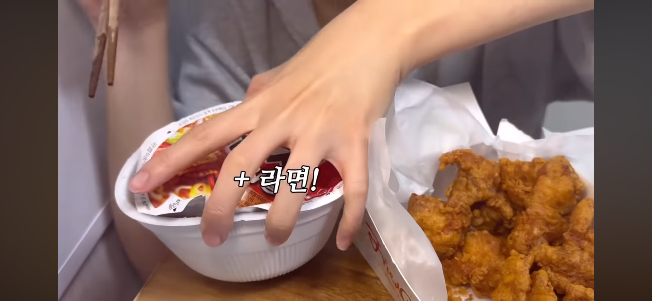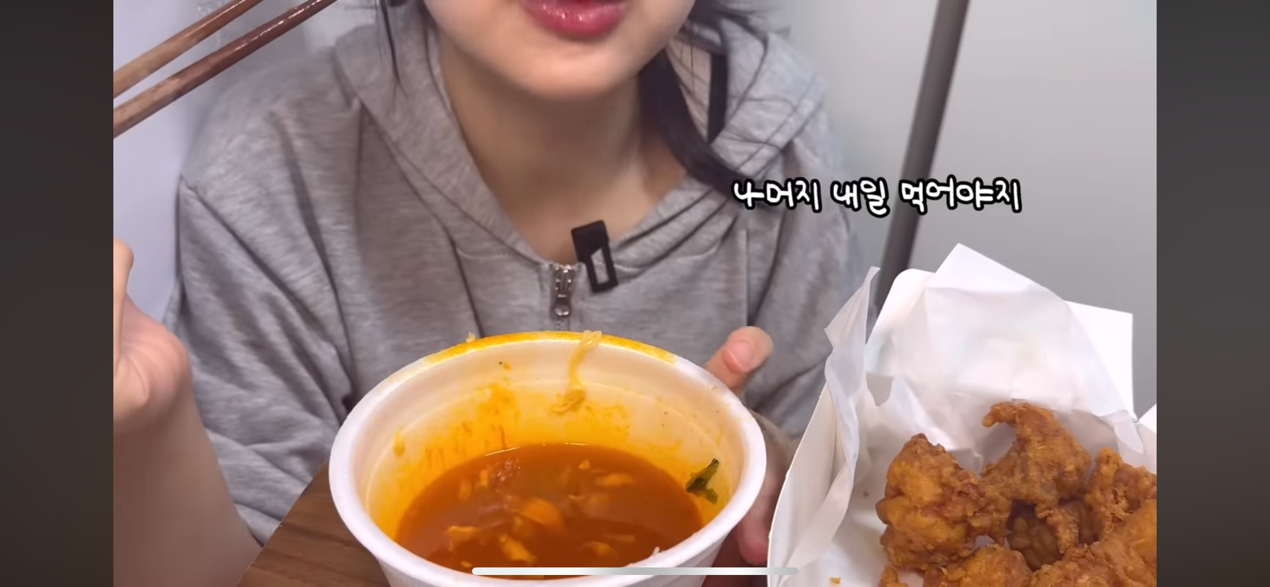 치킨 남은건 낼 먹겠다함 라면은 진즉 끝남