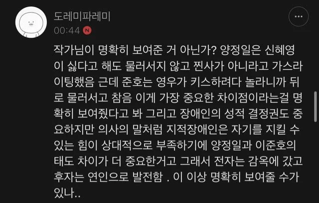 작성자금금금목목목 작성시간 24.03.25 키스도 안내해주는 친절함 난 그것조차 배려라고 여겼는데 외관만보며 어려보이는 영우를 아기처럼 행동까지 한다고 보지말고