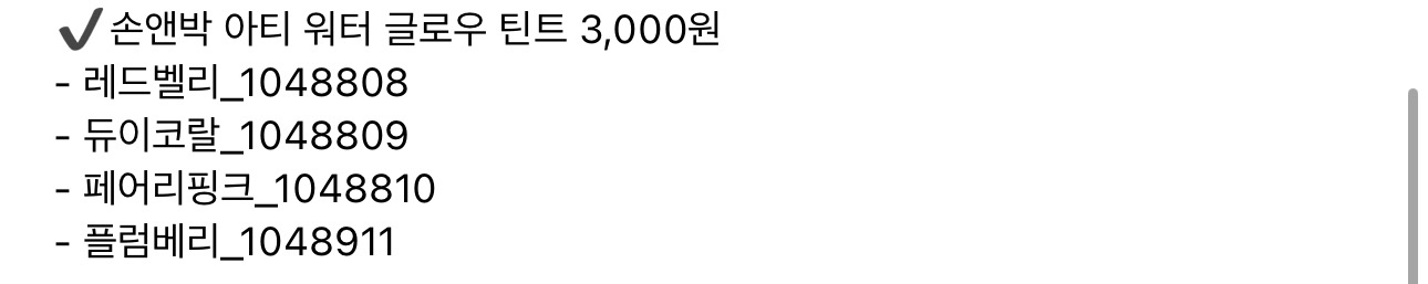 [흥미돋]다이소X손앤박 틴트, 컬러밤 출시 작성자바나나스플릿구슬|작성시간24.03.12|조회수52,945 목록 댓글 71 글자크기 작게가 글자크기 크게가 출처: 여성시대 바나나스플릿구슬 다음검색 현재 게시글 추가 기능 열기 북마크 공유하기 신고 센터로 신고 댓글 댓글 71 댓글쓰기 답글쓰기 댓글 리스트 작성자쁘앙 | 작성시간 24.03.12 대박 기대 작성자날으는동까스 | 작성시간 24.03.12 치실도 좀 내주쇼 작성자오로르별빛 | 작성시간 24.03.12 저런거는 광고모델도 안쓰고하니까 돈도 확 내려가나보다 좋다 작성자파티핑 | 작성시간 24.03.23 로즈뮬리 없어,,,, 작성자오늘의날쉬 | 작성시간 24.04.07 미쳣다 댓글 전체보기