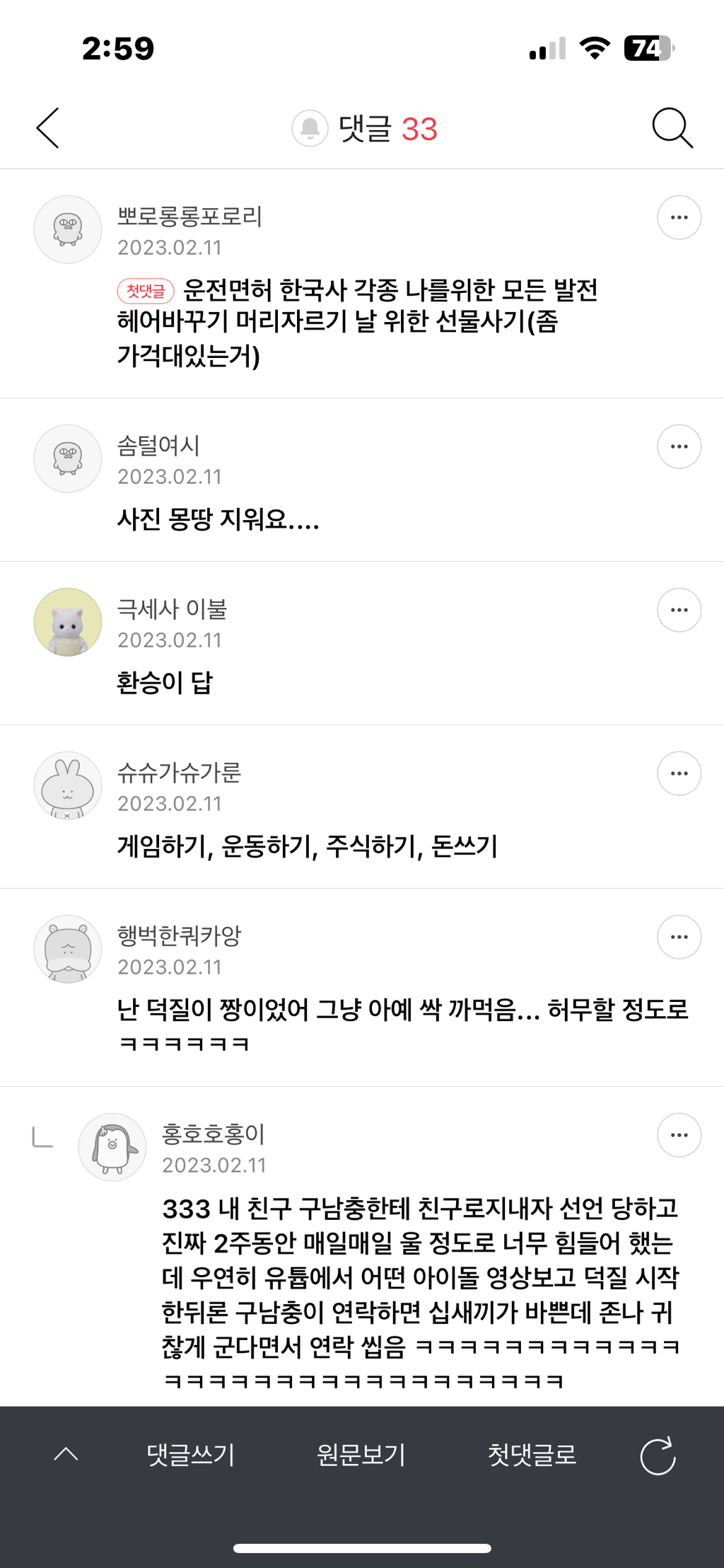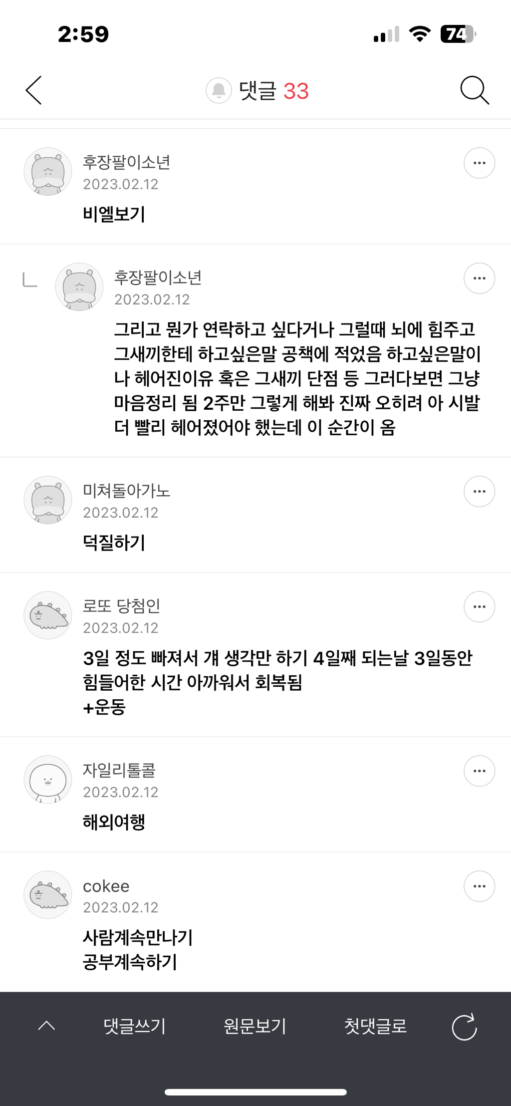 작성자아아어어오 작성시간 24.03.16 난 일단 흔적 기록 그 날로 다 지우고 정신없이 일하고 게임만 함..