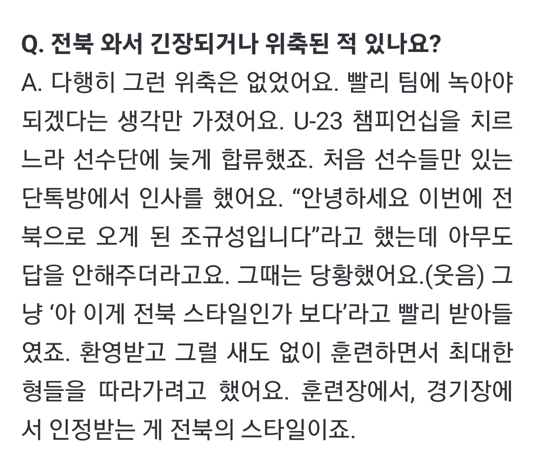 작성자룰라바아이 작성시간 24.03.15 얼마전 박지성이랑 밥먹을때도 본인의 단점을 정확하게 알고 있더라. 그걸 알고 있다는거 자체가 이미 보완하기 위해 노력중이라는거라고 생각함. 국대라는게 그냥 일반인인 내가 왈가왈부할수 있는건 아니라고 생각해서 단한번도 욕해본적도 없음. 다만 아쉬울 때도 있고 또 대견할 때도 있을뿐. 뿌듯해도 본인이 제일 뿌듯하고 속상해도 본인이 제일 속상하겠지. 그리고 그 부분들을 그냥 있기보다는 발전하려고 노력하다보면 언젠가 그 모습이 나타날거라고 생각함. 축구는 감독 놀음임 조규성을 잘 파악하고 써줄 감독을 만나면 또 엄청 잘할 수도 있음!