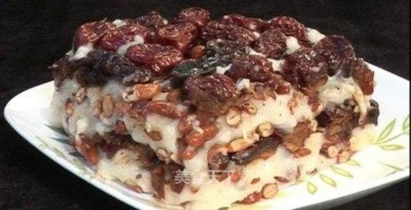 "중국 베이징의 전통 후식이며 겨울에 자주 먹는 떡이다. 찹쌀, 대추, 설탕, 계화꽃, 강낭콩의 꼬투리로 쪄서 만든 떡이다. 따뜻하고 쫀득하며 달달한 맛이다."