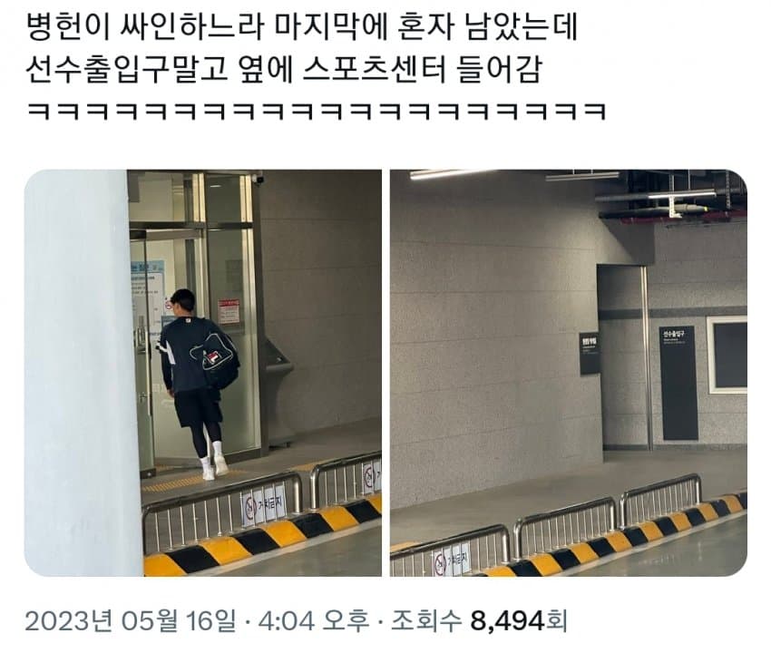 야구선수인데 선수출입구로 안들어기고 스포츠센터 들어감
