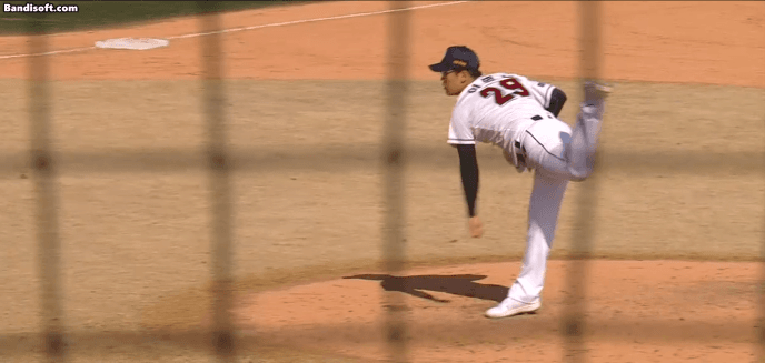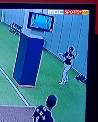 야구 중계로 불펜 상황 보여주는데 자기가 던진 공에 자기가 맞는거 찍힘