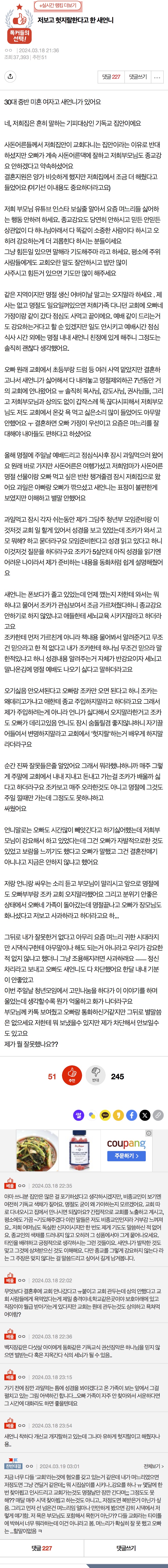 작성자한미주식장인 작성시간 24.03.30 어휴 본인 종교강요하는줄도 모르고ㅠ 이래서 개독은 개독끼리 만나야한가봄 ㅠ