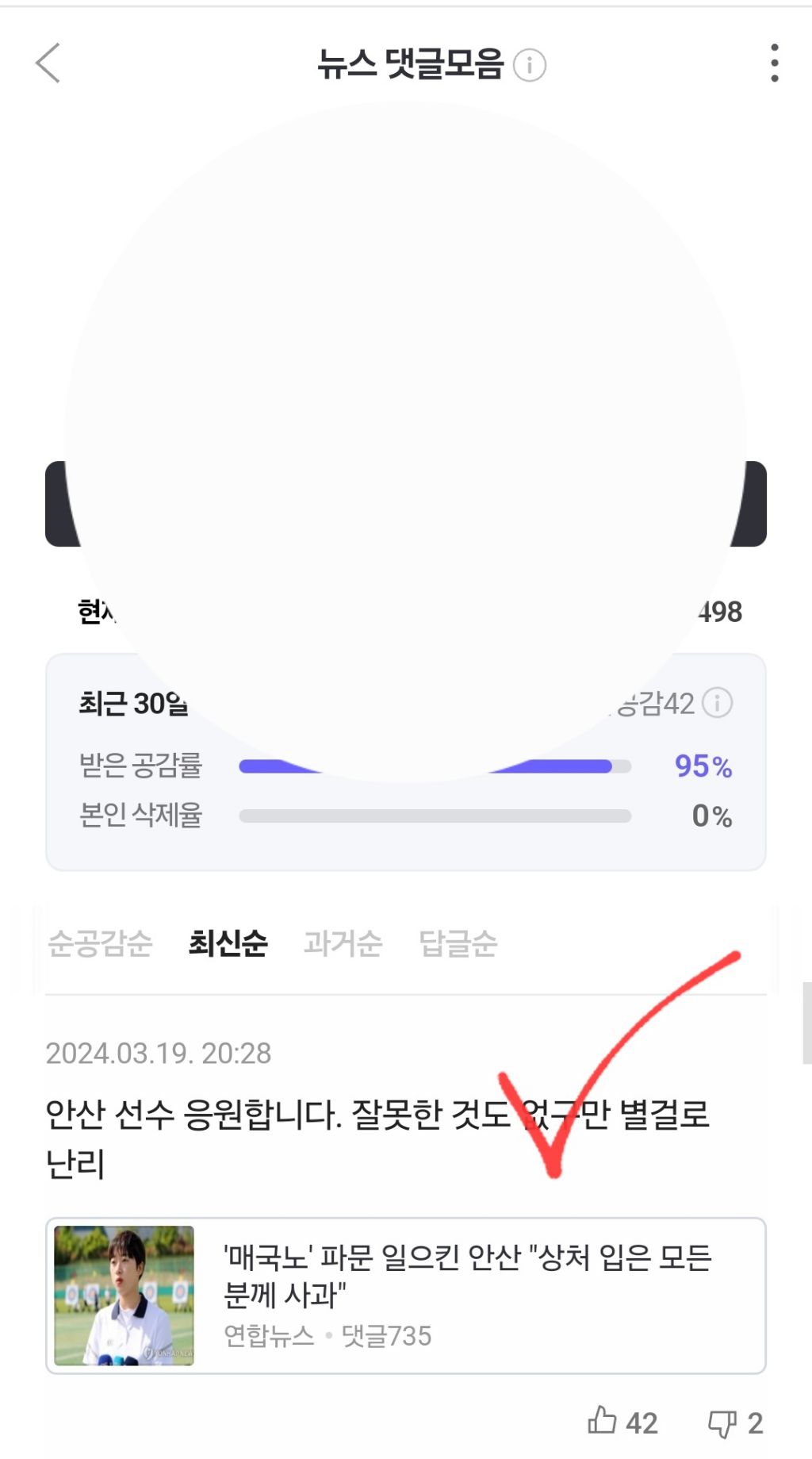 네이버 기사 접속 시 하단에 바로 노출되는 댓글은