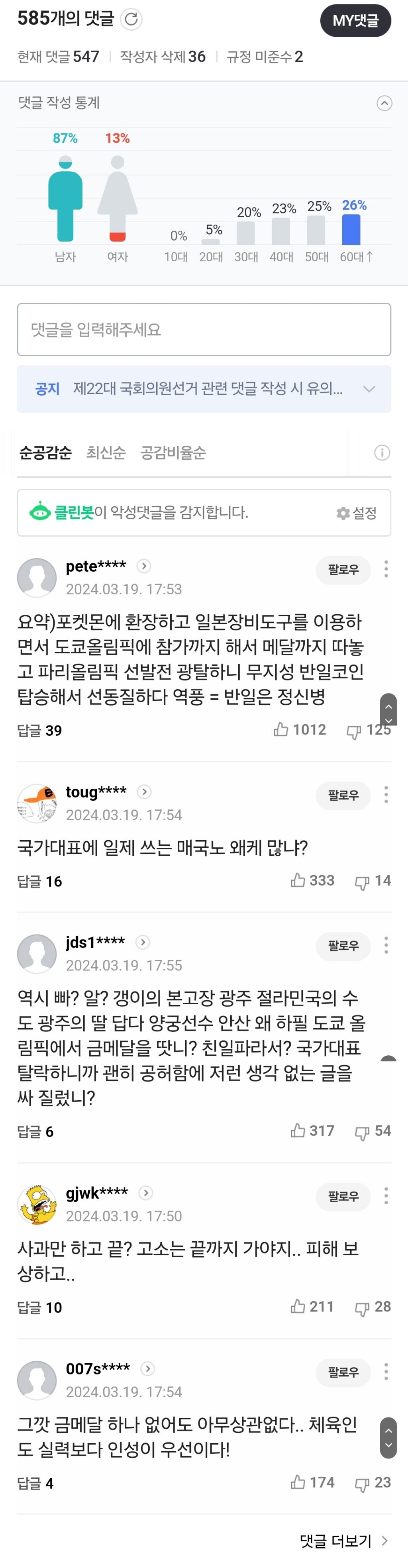 댓글 남기는 건 아이디 보이니까
