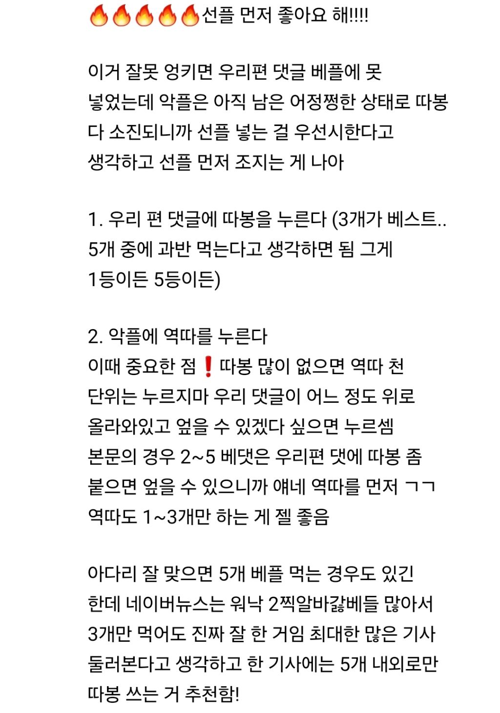베댓으로 선플이 올라갈 수 있음
