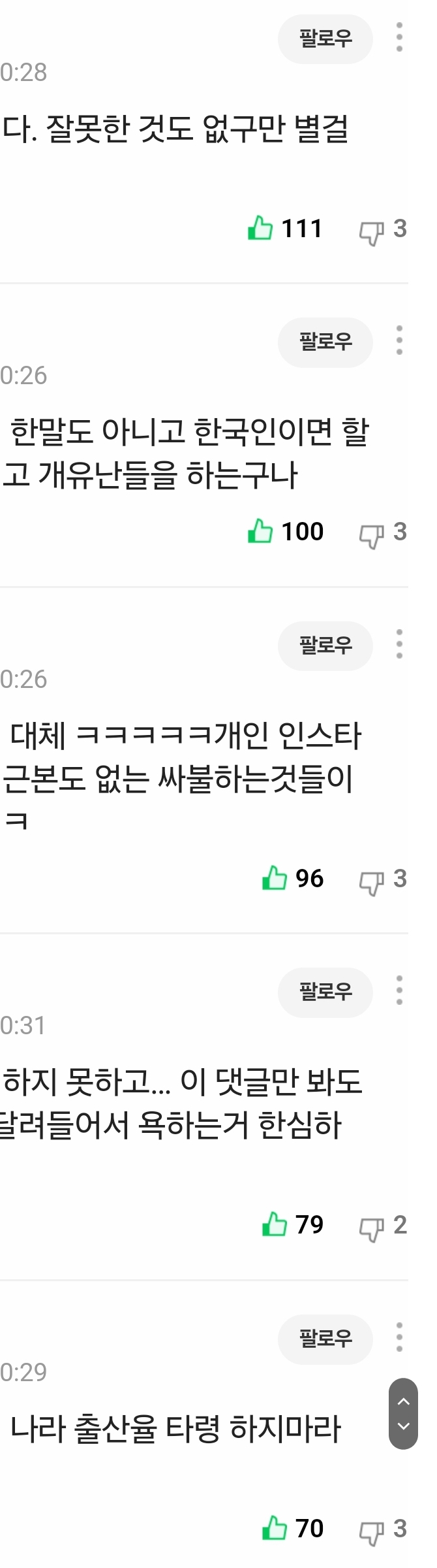 공감순 위에서부터 5개 역따봉👎 누른다