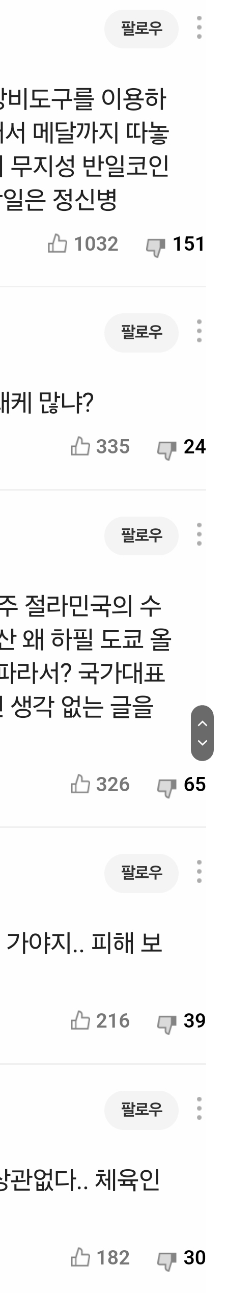 어느 정도 따봉수가 높은 댓글을 찾아서