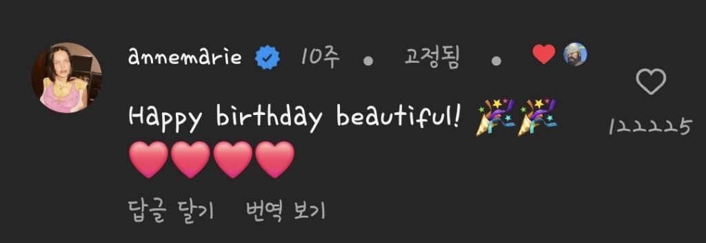 [힐링]K-잼민이 생일 자축릴스에 직접 생일 축하해준 앤마리 작성자T없는I|작성시간24.03.19|조회수39,577 목록 댓글 287 글자크기 작게가 글자크기 크게가 출처: https://www.instagram.com/reel/C1w14eCvUCe/?igsh=dXQwYWp2OXJxenR4잼민이도 넘 귀엽고앤마리도 따숩고 ~ 다음검색 현재 게시글 추가 기능 열기 북마크 공유하기 신고 센터로 신고 댓글 댓글 287 댓글쓰기 답글쓰기 댓글 리스트 작성자코드쿤스트55 | 작성시간 24.03.20 귀여워 ㅜㅜㅜ 작성자시그니처아냐 | 작성시간 24.03.20 귀여워ㅠㅠㅋㅋㅋㅋㅋ 작성자감사감사합니다 | 작성시간 24.03.20 아진짜귀엽다ㅋㅋㅋㅋㅋㅋㅋㅋㅋㅋㅋㅋㅋㅋㅋㅋㅋ 작성자bad luck today, do it NOW | 작성시간 24.03.22 넘 귀여워 ㅋㅋㅋㅋㅋㅋㅋㅋㅋㅋㅋ 작성자개굴개굴개굴개굴 | 작성시간 24.07.18 아 나 왜 울컥하지? 울었어 아가 생일 축하해ㅠㅠㅠ 댓글 전체보기