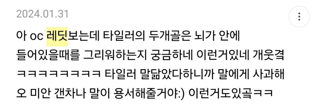 작성자복숭아톡톡 작성시간 24.03.31 나 진짜 영어 못하는데 리얼리티때매 레딧 깔아봄ㅋㅋㅋㅋㅋㅋㅋㅋ 가볍게 볼려고 튼 리얼리티에 과몰입해가지고 달글로는 성에 안차서 레딧깔아서 실시간으로 분석글 다 읽고 하느라 그때 영어 조금 늘었음 지금은 다시 제자리
