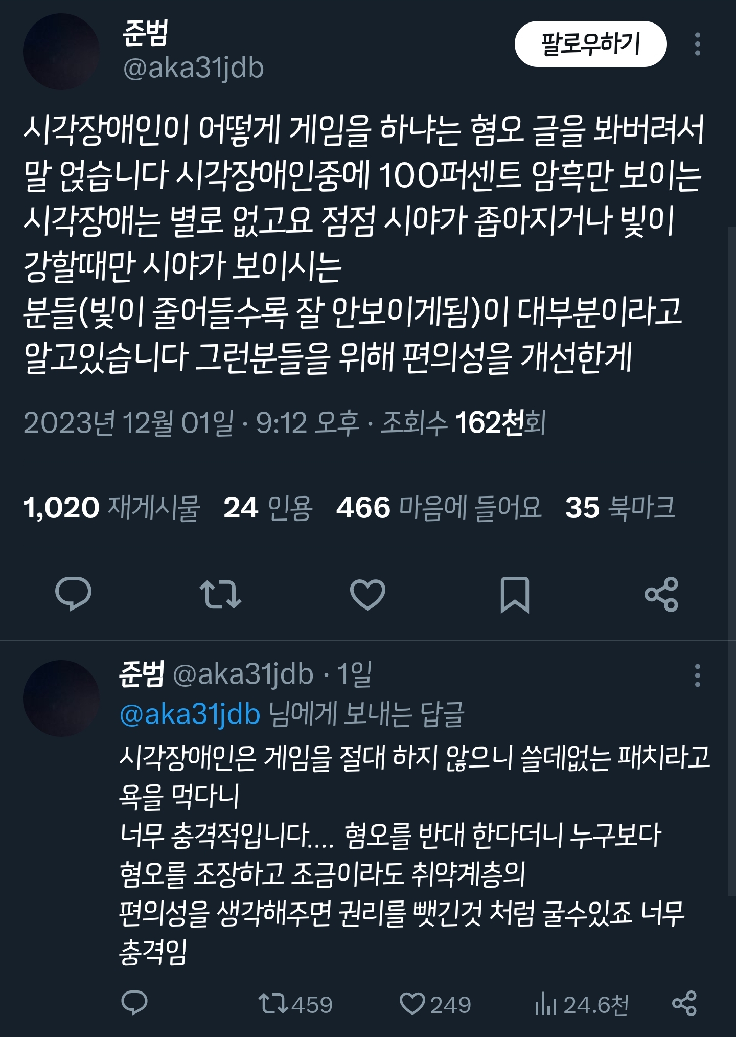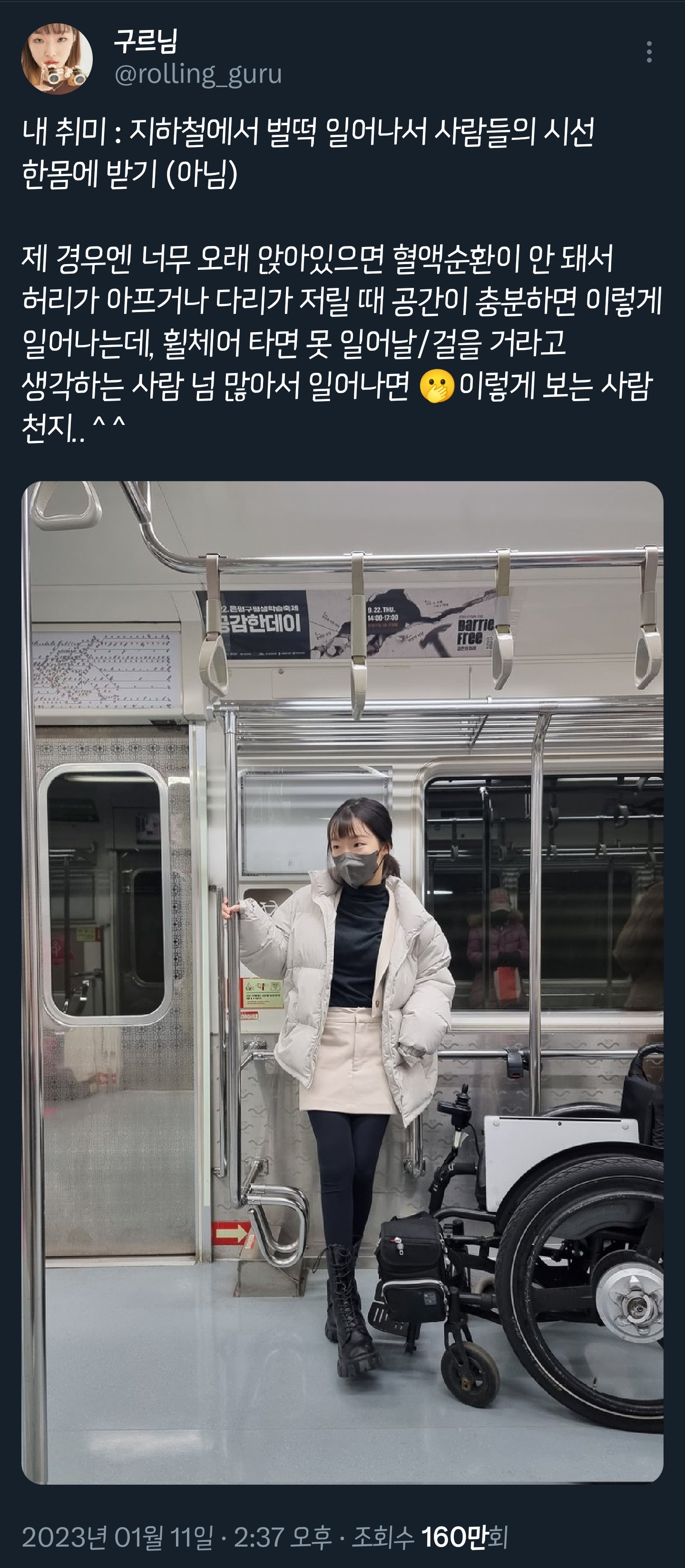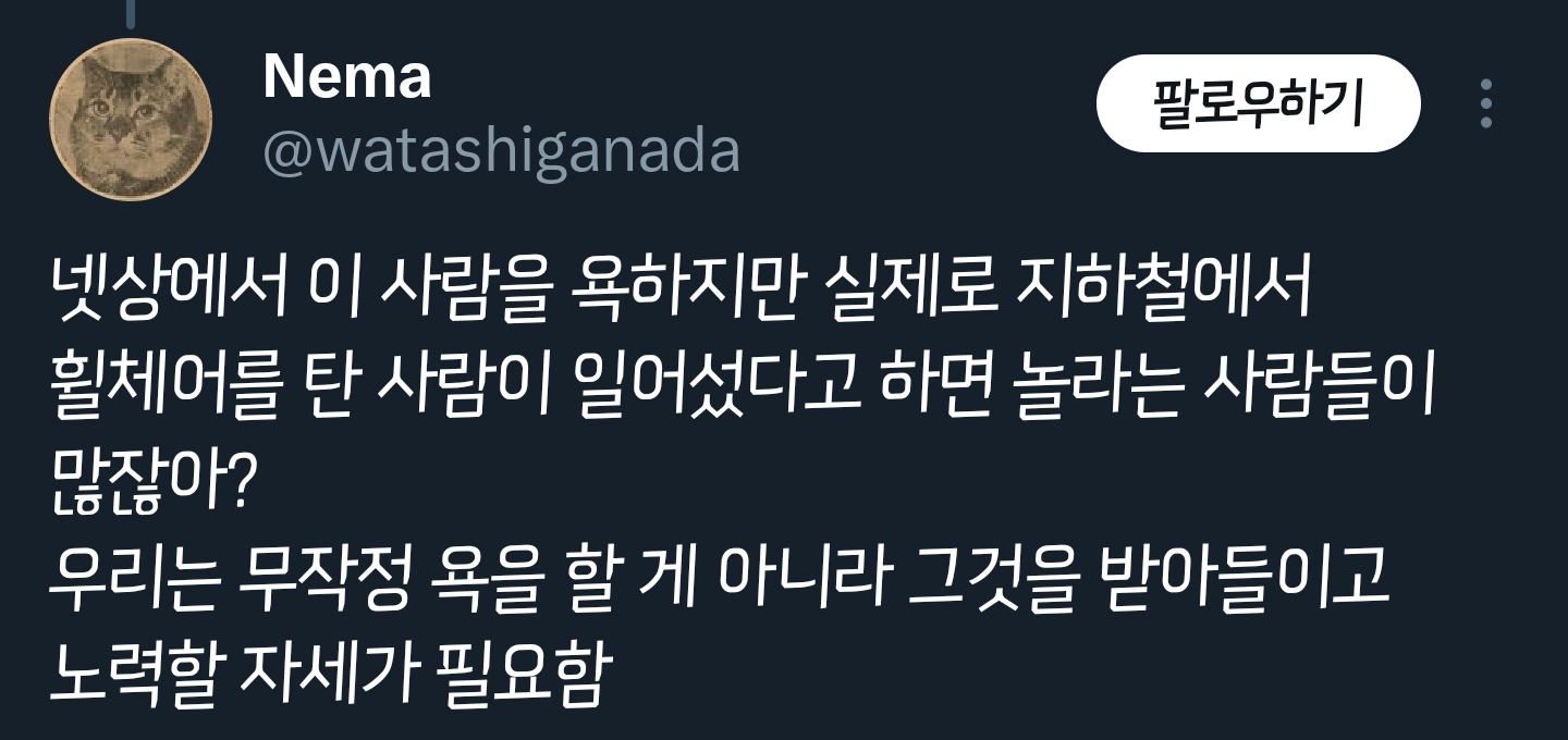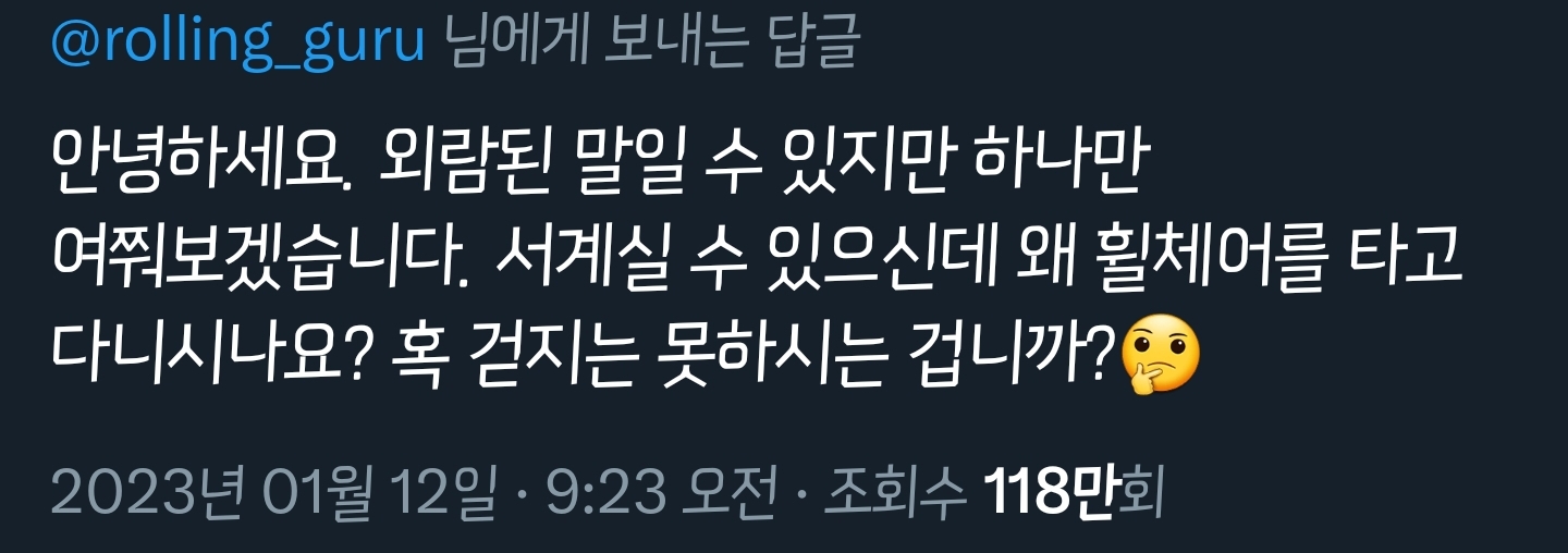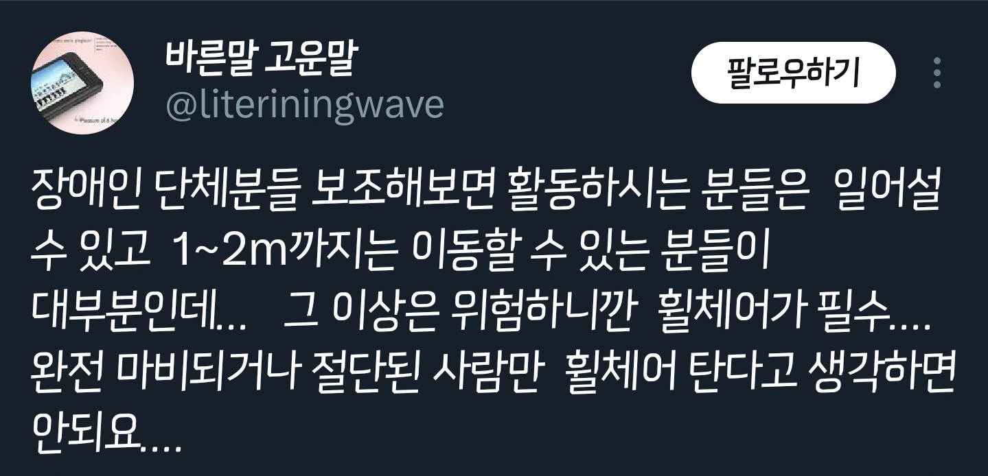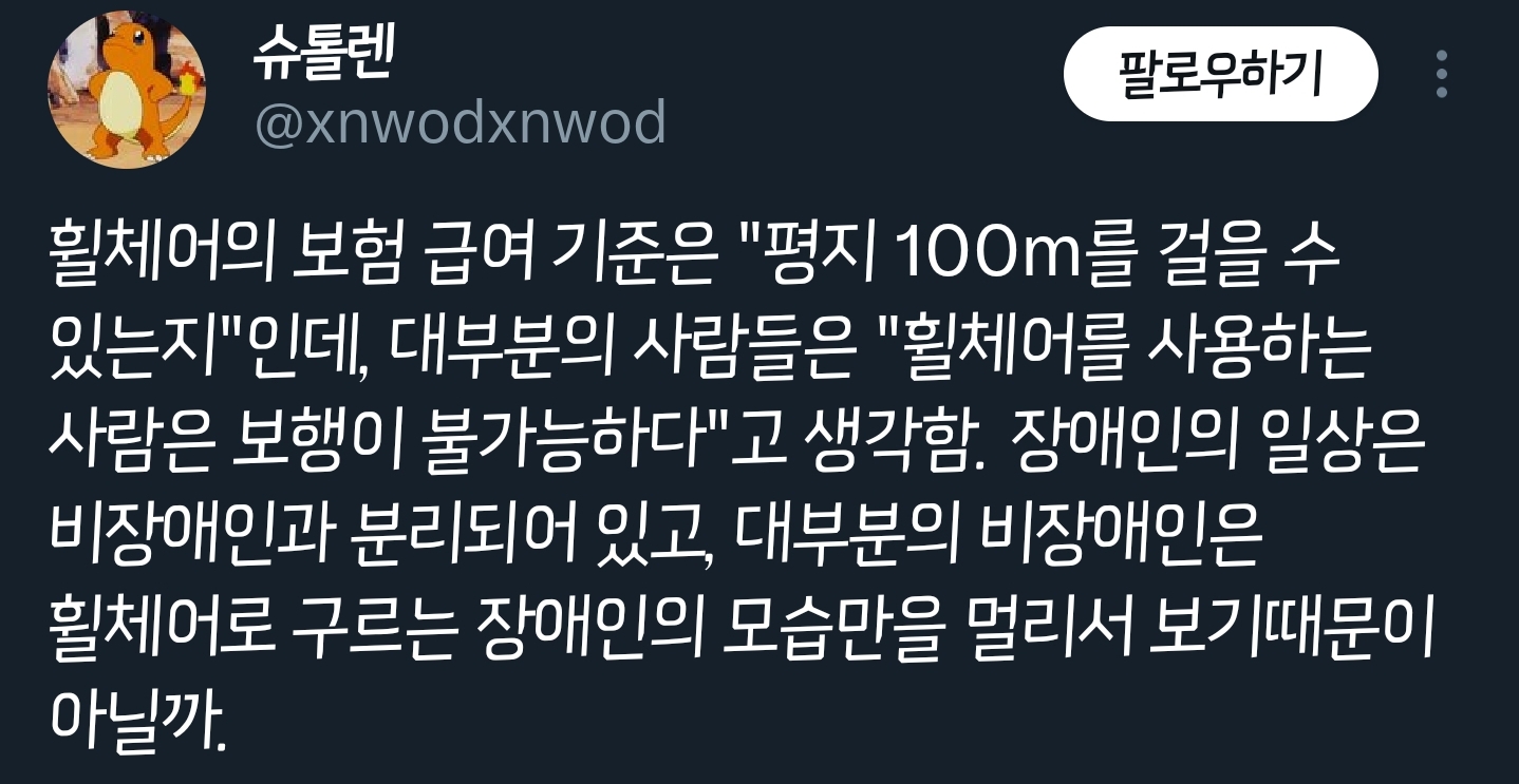 (트윗쓰신 분은 평소에 휠체어를 사용하는 장애인 유투버)