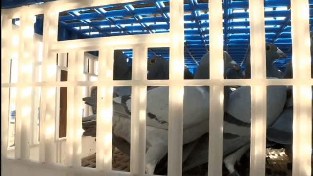 공중제비만으로 얼마나 멀리 갈 수 있는지 놓고 비둘기 개조술사들이 참가해서 겨룸