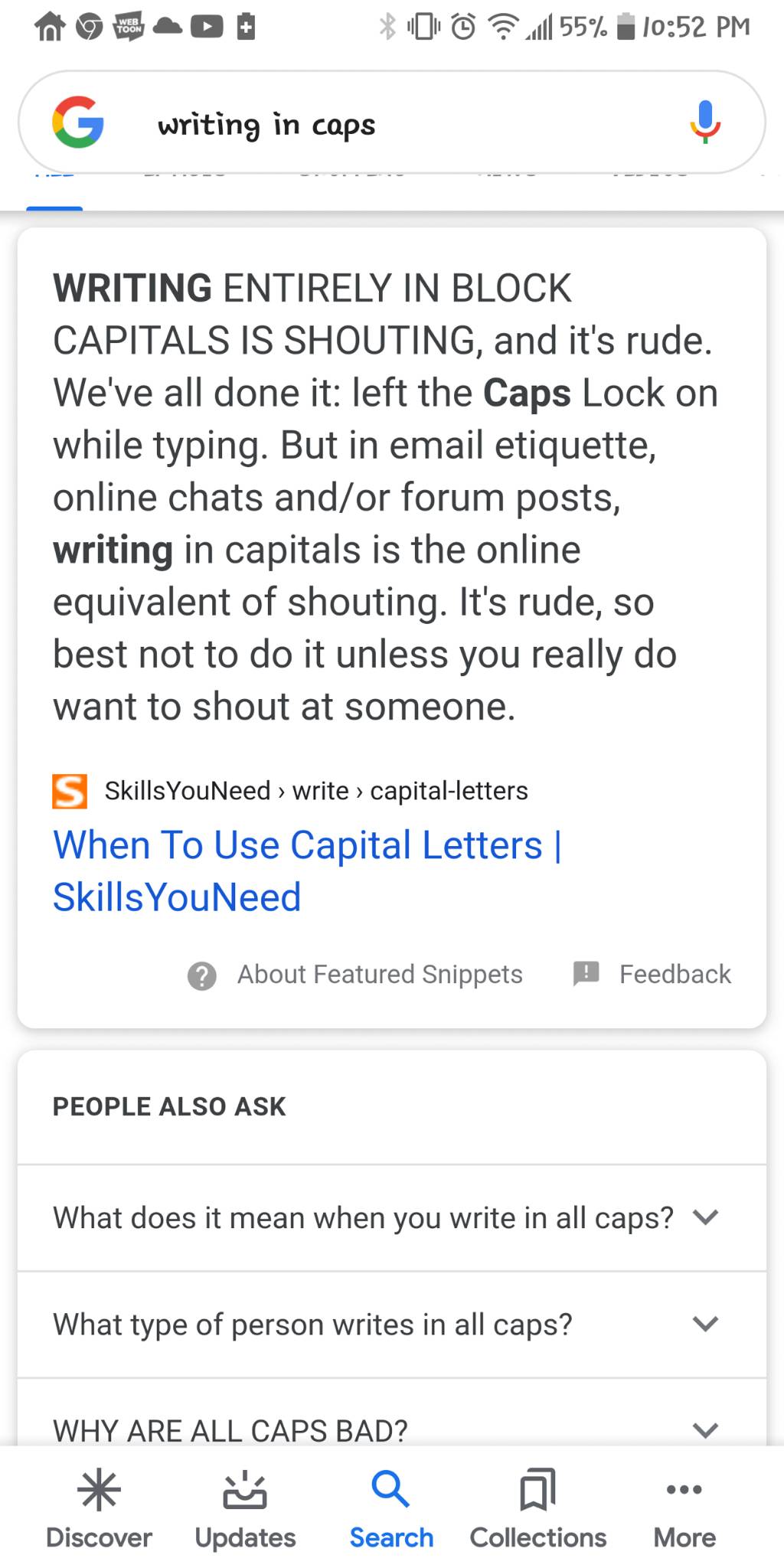 + 손으로 대문자 글씨 쓰는건 괜찮대 온라인(인터넷, 문자)에서 대문자로 쓰면 저런 뉘앙스로 본다고 함